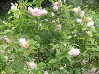 Les fortes chaleurs qui règnent dans mon jardin en été dessèchent toujours en profondeur le sol superficiel qui ne retient jamais bien longtemps les pluies d'orage même abondantes. Les floraisons remontantes ne le sont souvent que très peu ou même pas du tout pour certains arbustes. La plupart de mes rosiers, surtout les variétés anciennes, marquent une grande pause pendant l'été et ne refleurissent fréquemment que pendant l'arrière-saison si elle est suffisamment fraîche et humide. Je m'y suis résigné et me console avec la floraison généreuse des vivaces.